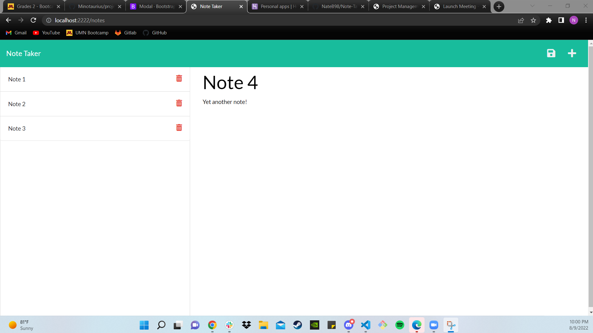 I have made a note taker app that stores your notes that you have written. for this I had to create a server file as well as routes to link the html, css, and javascript files so that they will display to the page with full functionality.